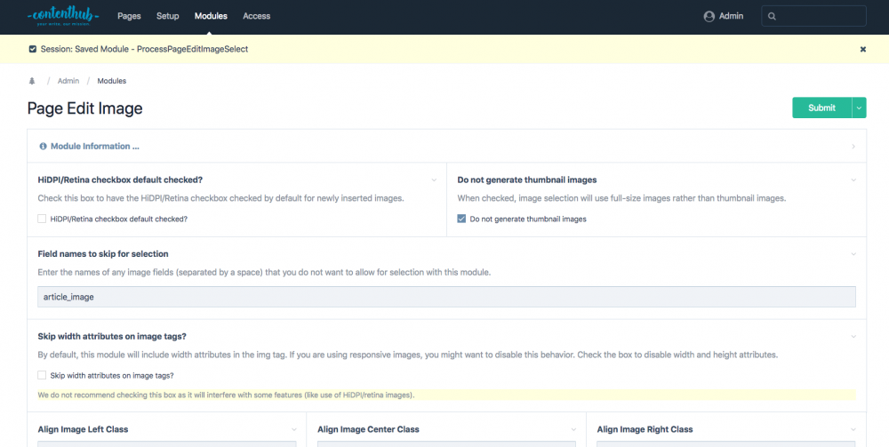 Sure - I added 2 files with adminonsteroids: site/template/admin/admin.css site/template/admin/admin.js With these codes I hide following features: Image Cropping Image Variations Image Title change Image Actions Image Change on Drag & Drop /* added ot admin panel sites */ .InputfieldFileActionSelect, .InputfieldImageEdit__info, .InputfieldImageEdit__buttons button { display: none !important; } .InputfieldImageEdit__buttons button.InputfieldImageButtonFocus { display: inline-block !important; } .InputfieldImageEdit__name span { cursor: default; } .InputfieldImageEdit__imagewrapper .detail-upload { visibility: hidden !important; } // added ot admin panel sites $(document).ready(function() { $('.InputfieldImageEdit__name span').removeAttr('contenteditable'); });