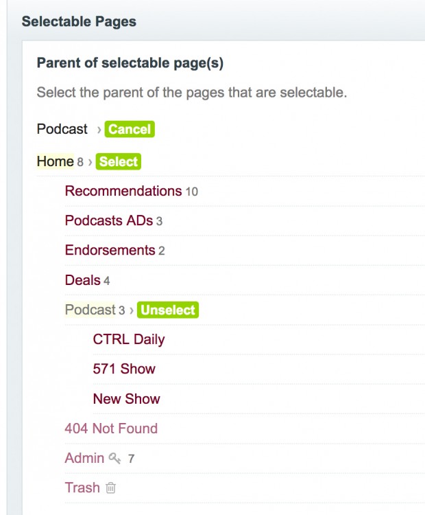 'podcast_shows' is a field that uses the page option that's set to Single Page or boolean false. It gets childpages from 'Podcast'