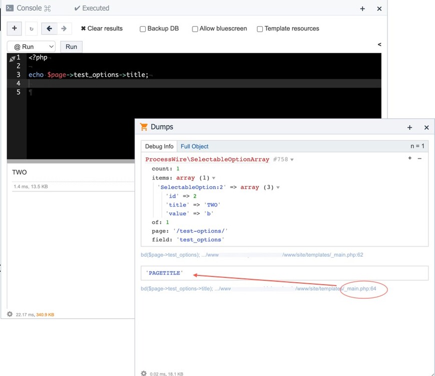 Hi @bernhard, thank you for replying… echo $page->test_options->title… in ready.php works as expected in _main.php it gets replaced by page title field, same in main render file latteRenderer.php or any section.latte template file a bd($page->test_options) looks good a bd($page->test_options->title) shows the page title instead a tracy console call echoes correct $page->test_options->title
