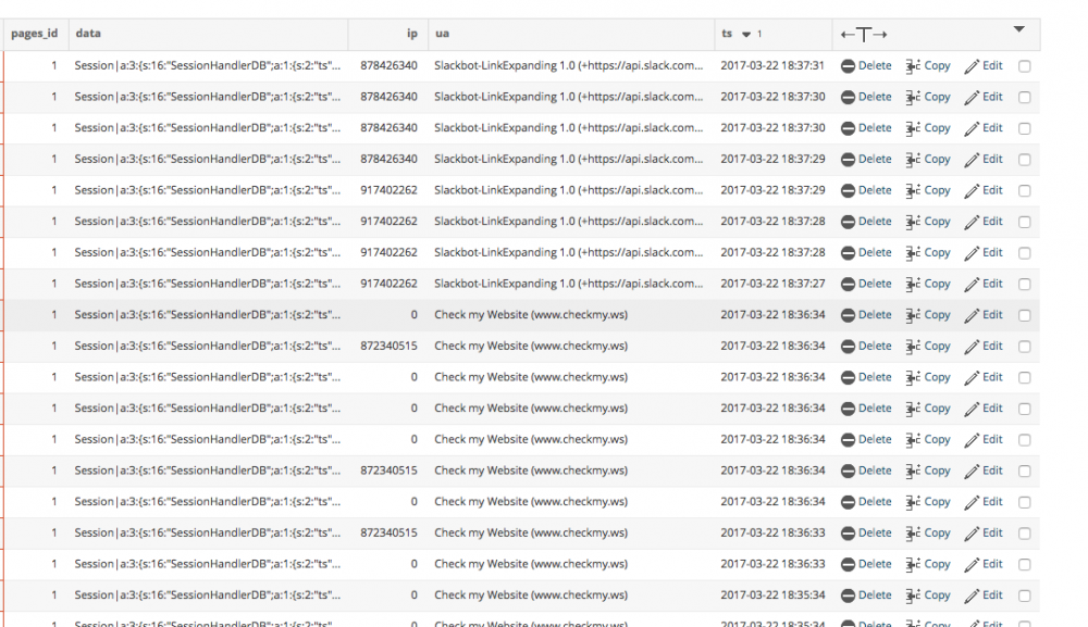 Hello, My website is live for 24h now. In the admin, setup->session section, I see many sessions but apparently own buy the same user, is it normal ? (see the screenshot). I guess it eats database ram ? Is there a way to change that behavior ? Stop the db sessions maybe ? Update : Don't know if it's related but my Guest user is inserting dozens and dozens of lines in session table... (10 to 100 / minute) Thanks