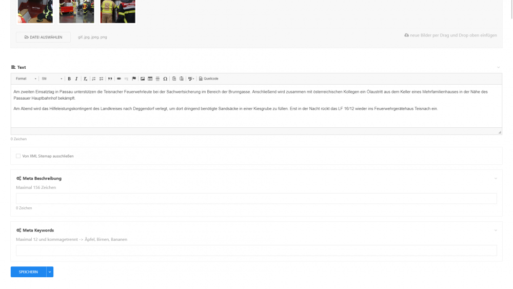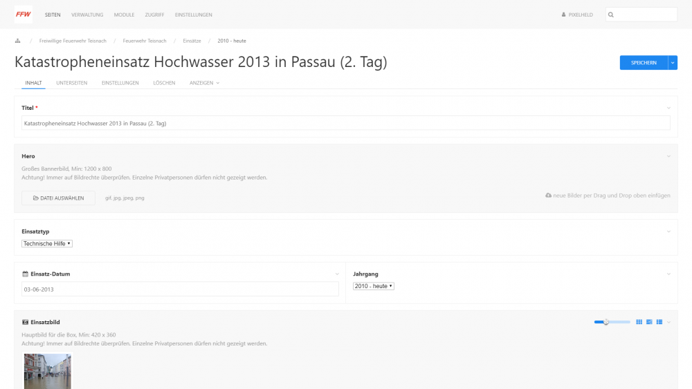 feuerwehr-teisnach.de ProcessWire 3.0.62 Screenshots show the management of operations, where they can choose the date, age-group, vehicles in operation and they can write a text and put some gallery into it. Modules: Uikit v3 admin theme Auto Smush Markup Sitemap XML Pagetree Add New Childs Reverse Upgrades Checker Simple Contact Form CSS (SASS) & JSS compression with: grunt-sass grunt-uglify grunt-contrib-cssmin Libraries: UiKit 2 jQuery Owl Carousel hamburgers