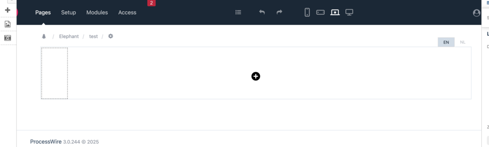 Testing new install Warning: Undefined array key "inlineLimitPage" in /var/www/html/elephant-test-pagegrid/site/modules/FieldtypePageGrid/FieldtypePageGrid.module.php on line 481 then when i try to download the default block modules i get ProcessModuleInstall: Module install option “download” - This install option is currently disabled. To enable, edit file /elephant-test-pagegrid/site/config.php and specify: `$config->moduleInstall('download', true);` to enable always …or… `$config->moduleInstall('download', 'debug');` to enable in debug mode only Even thought the site is in debug mode. I added the lines above and it got the install to work. Great! Now i'm stuck on languages - can the rich text be translated? I added my languages and I get this tab: But it doesn't seem to do anything. I tried making pg_text and pg_editor multilanguage, but it didn't make any difference, as far as I can see: thanks again! j