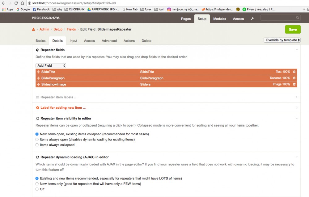 Hello, I have a Repeater of clients testimonial on main.php which I want to appear on 4 other pages. If I go to Setup >> Field >> Repeater >> Action and select the pages I want the Repeater to appear, I have re-enter all testimonial details in new Repeater field created on the other 4 pages. I think I did it wrong. Is there a smarter way to do this without repeating ?