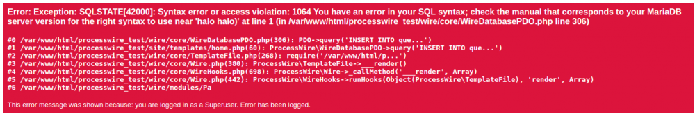 $pDOStatement = $database->query("INSERT INTO questions (ID_USER,TIME_Q, QUESTION) VALUES (1,NOW(), $pertanyaan)");