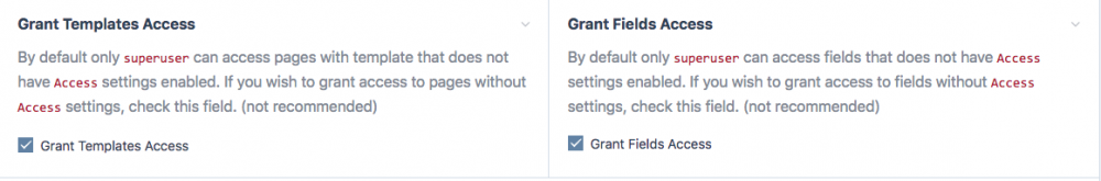 I've turned on nearly every field in the module setting now and still no joy unless I tick those Template and Field access checkboxes