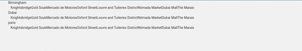 I've two templates, one is category (multi select check boxes) and one is result based on the selected category when I'm rendering result page all result is showing in every category, its not filtered each result should be belongs to the referenced category <?php $getCities = $pages->find("template=t3Cities_list, tags={$page->tag_code}, sort=title"); $getResult = $pages->find("template=attractions, tags={$page->tag_code}, sort=random"); ?> <div class="container"> <?php foreach($getCities as $city){ echo "<div class='row'>"; echo $city->title ; echo "</div>"; foreach($getResult as $result){ echo $result->title ; } } ?> </div> result should be like this Birmingham Oxford Street Louvre and Tuileries Dubai Gold Souk Dubai Mall paris Mercado de Motores Nómada Market