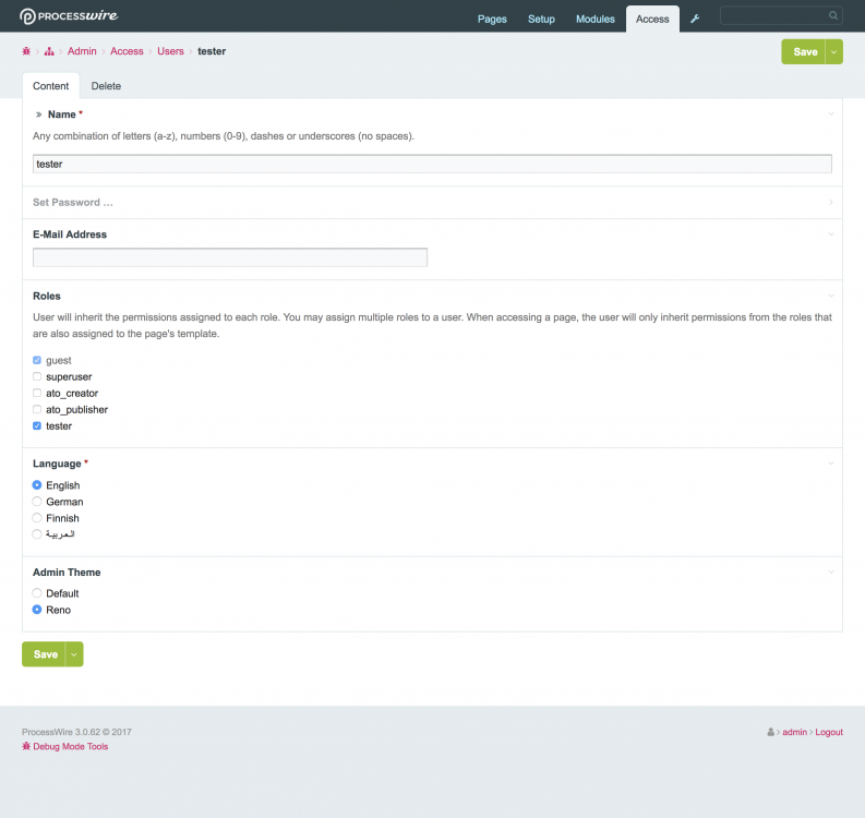 @cstevensjr Yes same template, and there isn't any field have their own permissions, only seo tab fields are there (MarkSEO) Processwire version is 3.0.62 PHP version is 7.0.22-Obuntu0.17.04.1 MacOS Seirra 10.12.6 -