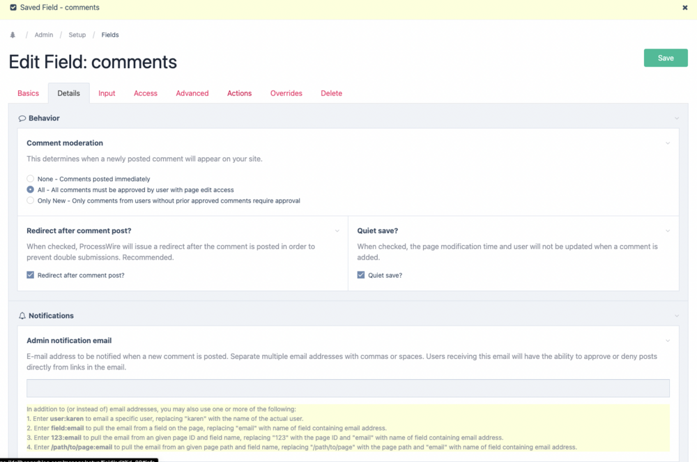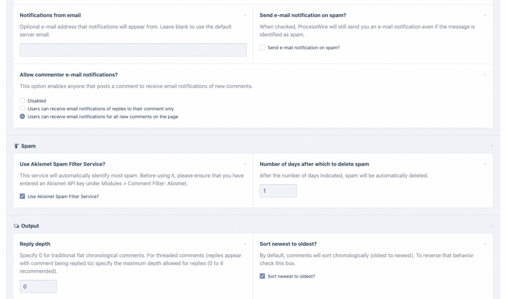 Hi everyone. First, my blog site is NSFW. It's a sex doll blog. FYI. I just realized today that people have been commenting away on the blog, but I didn't even know. They weren't (and still aren't) displaying on the site. I just thought no one was engaging with comments. Nope. I only realized it because I was logged in and writing a blog post. I forget why, but this time I stayed logged in to the admin and loaded a post to check something, then saw a whack of comments. But, it was half legit and half SPAM. I popped over to another browser where I wasn't logged in and there were no comments displayed. I then popped into the admin and checked the comments - sure enough they they are. But, they have been set variations of either "Pending" or "SPAM". I was seeing them all on the posts. I then checked the template - not written by me, and I'm not a developer at the level of most here - I'm a creative pro with some experience. I can't recognize a glaring problem, but obviously there is one and I can't diagnose it. On the blog-post.php template, here's the code to kick out a blog post comment and the form: <?php // blog post content echo dbbBlogPost(page()); // comments $comments = page()->comments; // comment list if(count($comments)) { echo ukHeading3("Comments", "icon=comments"); echo ukComments($comments); } // comment form echo ukHeading3("Post a comment", "icon=comment"); echo ukCommentForm($comments); // link to the next blog post, if there is one $nextPost = page()->next(); if($nextPost->id): ?> <p class='next-blog-post'> Next <?=ukIcon('chevron-right')?> <a href='<?=$nextPost->url?>'><?=$nextPost->title?></a> </p> <?php endif; ?> This is what's in the _func.php: function dbbBlogPost(Page $page, $options = array()) { $defaults = array( 'summarize' => null, // Display blog post summary rather than full post? (null=auto-detect) 'metaIcon' => 'info-circle', 'moreIcon' => 'angle-right', 'moreText' => __('Read full post'), 'categoryIcon' => 'hashtag', 'bylineText' => __('Posted by %1$s on %2$s'), ); $options = _ukMergeOptions($defaults, $options); $title = $page->title; $date = $page->get('date|createdStr'); $name = $page->post_author->title; $body = $page->get('body'); $mainImage = $page->image->url; $metaIcon = "<i class='fas fa-".$options['metaIcon']."'></i>"; $moreIcon = "<i class='fas fa-".$options['moreIcon']."'></i>"; $categoryIcon = "<i class='fas fa-".$options['categoryIcon']."'></i>"; $n = $page->get('comments')->count(); $numComments = $n ? "<a href='$page->url#comments'>" . ukIcon('comments') . " $n</a>" : ""; $gallery = ""; if($options['summarize'] === null) { // auto-detect: summarize if current page is not the same as the blog post $options['summarize'] = page()->id != $page->id; } $categories = $page->get('categories')->each($categoryIcon . "<a class='uk-button uk-button-text' href='{url}'>{title}</a> " ); if($options['summarize']) { // link to post in title, and use just the first paragraph in teaser mode $title = "<a href='$page->url'>$title</a>"; // $body = sanitizer()->truncate($body, $options['summarizeOptions']); $body = explode('</p>', $body); $body = reset($body) . ' '; $body .= "<div class='post-preview-more'><a href='$page->url'>$options[moreText] $moreIcon</a></div>"; $class = 'blog-post-summary'; } else { $class = 'blog-post-full'; } if($options['summarize']) { $heading = "<h2 class='uk-margin-remove'>$title</h2>"; } else { $heading = "<h1 class='uk-article-title uk-margin-remove'>$title</h1>"; } $byline = sprintf($options['bylineText'], $name, $date); if(!$options['summarize'] && $page->gallery) { $gallery = renderGallery($page); } // return the blog post article markup return " <article class='uk-article blog-post $class'> <img class='feature-image' src='$mainImage' alt='Post image' /> $heading <p class='uk-margin-small'> <span class='uk-article-meta'> $metaIcon $byline </span> <span class='categories'> $categories </span> </p> $body $gallery </article> <hr> "; } I also know there's a comments field with various settings, but nothing I can find there would prohibit anyone from seeing comments, nor would it specifically show a logged in user all comments including SPAM. Any guidance would be appreciated.