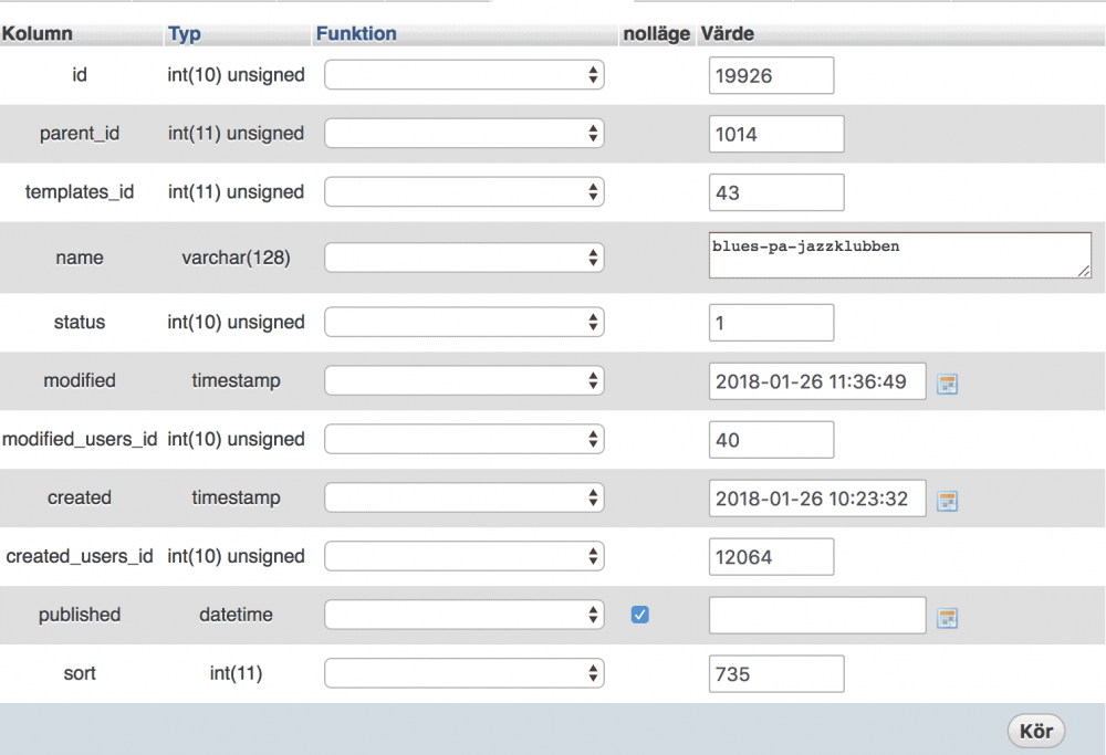 Still no luck with this code. Why is the published filed a datetime field and created and modified timestamps? -
