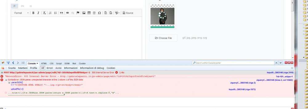 Hi all, this is the error in apache error log: [Wed Jun 20 09:44:10 2018] [error] [client 79.62.226.25] Premature end of script headers: php-cgi, referer: http://gabrielepasini.it/pw-admin/page/edit/?id=1124