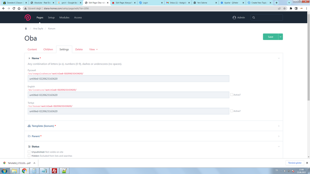 Hi, i have a "page reference" field called "konum". "Allow new pages to be created from field" true i did all necessary things below 1. Both a parent and template must be specified in the “Selectable pages” section above.2. The editing user must have access to create/publish these pages.3. The “label field” must be set to “title (default)”. When i try to create new field for "konum" the url of field become "untitled-0220623163620" so like this /en/location/untitled-0220623163620/ whats the problem?