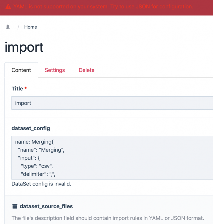 I'm trying to import 60k pages from a CVS file. I installed the DataSet module but the dataset_config field seams not working. By default it is set as a textarea filed, and the configuration is not valid. There is also a message "YAML is not supported on your system. Try to use JSON for configuration." I installed the fieldtype-yaml module and set it for dataset_config but this is also not working. https://modules.processwire.com/modules/fieldtype-yaml/ Any suggestions? All other modules required are installed. The formatting on the screenshot for YMAL is wrong, I know.