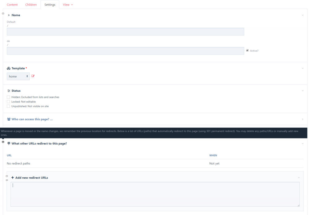 There is also the option to add redirect URLs in the page settings, but it seems to be restricted only to superusers. Does anyone know of a way to grant permission for this option to another user role?