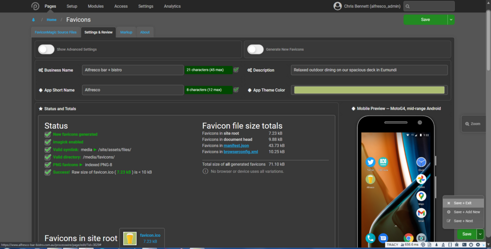 https://github.com/chrisbennett-Bene/AdminThemeTweaker Inspired by @bernhard's excellent work on the new customisable LESS CSS getting rolled into the core soon, I thought I would offer up the module for beta testing, if it is of interest to anyone. It takes a different approach to admin styling, basically using the Cascade part of CSS to over-ride default UiKit values. Values are stored in ModuleConfig Module creates a separate AdminThemeTweaker Folder at root, so it can link to AdminThemeTweaker.php as CSS AdminThemeTweaker.php reads the module values, constructs the CSS variables then includes the CSS framework Can be switched on and off with a click. Uninstall removes everything, thanks to bernhard's wonderful remove dir & contents function. It won't touch your core. It won't care if stuff is upgraded. You won't need to compile anything and you don't need to touch CSS unless you want to. It won't do much at all apart from read some values from your module config, work out the right CSS variables to use (auto contrast based on selected backgrounds) and throw it on your screen. You can configure a lot of stuff, leave it as it comes (dark and curvy), change two main colors (background and content background) or delve deep to configure custom margins, height of mastheads, and all manner of silly stuff I never use. Have been developing it for somewhere around 2 years now. It has been (and will continue to be) constantly tweaked over that time, as I click on something and find something else to do. That said, it is pretty solid and has been in constant use as my sole Admin styling option for all of those 2 years. If nothing else, it would be great if it can provide any assistance to @bernhard or other contributor's who may be looking to solve some of the quirkier UiKit behavior. Has (in my opinion) more robust and predictable handling of hidden Inputfields, data-colwidths and showIf wrappers. I am very keen to help out with that stuff in any way I can, though LESS (and any css frameworks/tools basically) are not my go. I love CSS variables and banging-rocks-together, no-dependency CSS you can write with notepad.