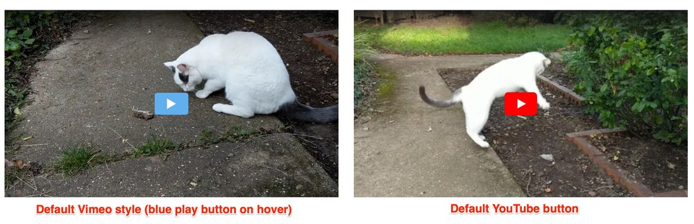 The placeholder background images are pulled from YouTube / Vimeo, so whatever thumnail you set there will be what gets shown. Then a pretend play button that gets added which defaults to the Vimeo blue / YT red buttons: When you click the button the placholder is replaced with the relevant iframed video. The module has a config option that will let you change the colour of that button. It's not too much effort to style the play button if you want to make it bespoke (as we did for https://osborne.coop/ ). Now - GDPR is a good question. All we're doing when the page loads is pulling an image in. Neither Privacy Badger nor uBlock are complaining about anything when we load an image from YouTube, but Privacy Badger does flag a cookie from Vimeo (uBlock doesn't mind). We use the no-cookie domain for YouTube as well of course. It doesn't look as if lite-youtube or lite-vimeo offer the option to use a local placeholder image but it's probably doable. Not enrirely sure how we'd configure it in a TextFormatter tho.