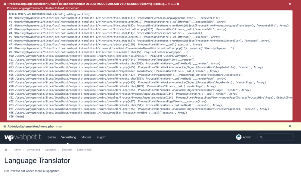 1. Hey there, we are having some issues with Multi-Languages. We have project with two languages and we sometimes have to use the String-Translations: For example: <?php echo __("Text in German");?> As soon as I try to translate this string i get the Exception "Unable to load textdomain". Someone got an idea what the solution could be? Would be very thankful about it!