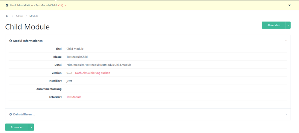 Thank you for your description. You're right if some syntax isn't 100% correct. But what I mean is the thing is that I can't call a parent function from a child function because the parent field value doesn't inherit. $m2 = $modules->get("TestModuleChild"); print_r($m2->getField());//function will not overwrite in child class The function result is (note field 2) [field 1] => parent module property 1 [field 2] => default field 2 I would have expected (note field 2), because i have input it on parent module (screenshot Parent Module) [field 1] => parent module property 1 [field 2] => Parent Module field 2 So I'm wondering if I can extend processwire class like a php class at all. At least not as a module extension.