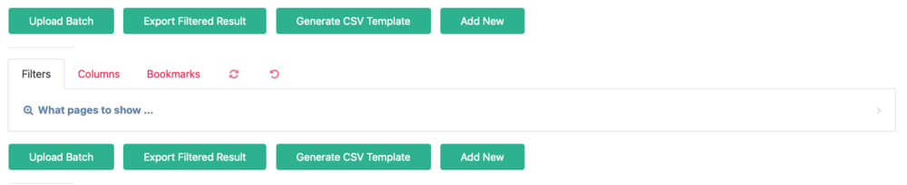 I created a PW module for a new admin page and I have set some buttons and a lister in an execute.php file: <div> <a class="ui-button" href="./upload-batch-record">Upload batch</a> <a class="ui-button" href="./export-filtered">Export filtered result</a> <a class="ui-button" href="./generate-template">Generate CSV Template</a> <a class="ui-button" href="<?= $addUrl ?>">Add New</a> </div> <hr class="uk-divider-small" /> <?= $table ?> Though to my surprise, Lister is also generating these buttons on top of the table like this: What can I do to prevent this?