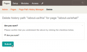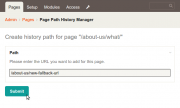 If you are using the great PagePathHistory module in core, this one might be helpful: Page Path History Manager https://github.com/boundaryfunctions/PagePathHistoryManager General This modules allows you to easily manage past page URLs tracked with the PagePathHistory module. It extends the settings tab on the page edit form in the backend and allows you to: view past URLs of the current page and parent pages, delete past URLs, and create new fallback URLs. How to use Use the form in the settings tab on the page edit form of every page in admin to view and manipulate past URLs. See Screenshots to get a better idea of what you can do. Installation Install the module PagePathHistory from within the Processwire admin. PagePathHistory is included in core but not installed by default. Grab the module from its Github repository. Install this module from within the Processwire admin or copy the file content to/site/modules/PagePathHistoryManager. In Admin, click Modules → Check for new modules to refresh module directory. Afterwards install the newly registered module PagePathHistoryManager. You can now manage past URLs from within the settings tab when editing any page. Screenshots Notes This module doesn't install or require PagePathHistory because I'm currently working with a fork of it that is language sensitive. I'll try to publish this one here as well, but I'm not done with final testing. Links You can grab this Module from Github: Source Releases Download latest release I would be glad if some of you could give this module a quick test drive and comment with some feedback here.