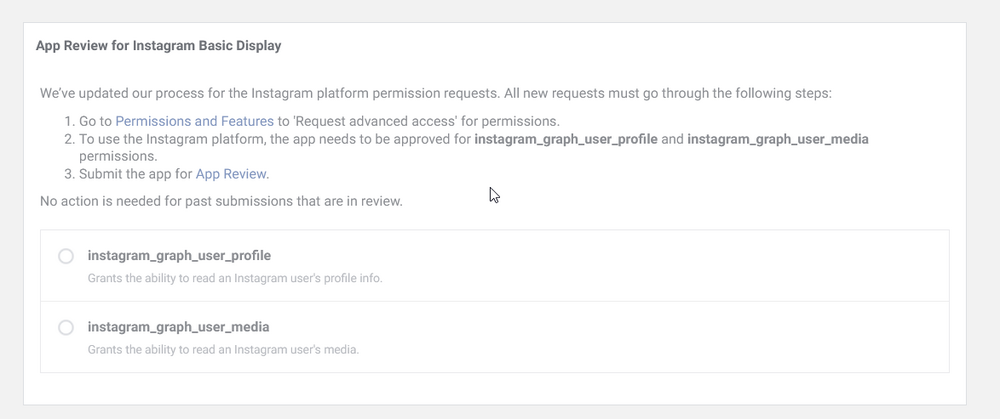 Hey, one of my feeds stopped working. I renewed the token, but it's not working - But I've noticed this message one Facebooks "Basic Display" page: Anyone else having this problem? This is how the module-page looks like: @nbcommunication Any ideas?