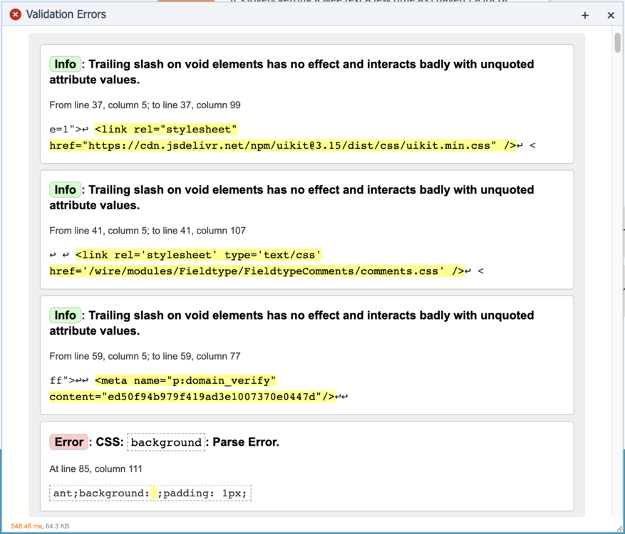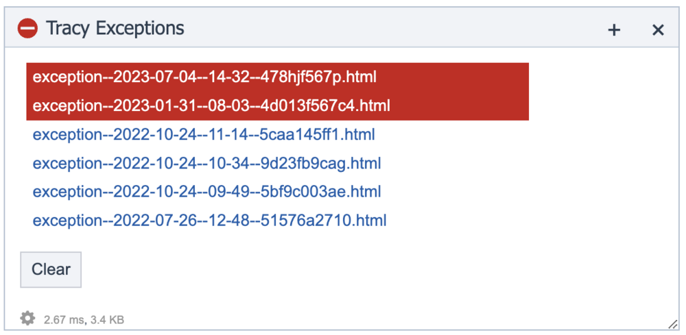 Hi everyone, Got a new feature for you today (at the request of @eydun). First some background - some of you might not even be aware that Tracy saves .html files of it's bluescreen stacktrace when an exception is thrown. The cool part about this is that these happen when Tracy is in production mode on a live site, so if you get a notification (via email or slack) that an exception was thrown, you can navigate to /site/assets/logs/tracy and load these html files in your browser and inspect the code (including values passed to functions etc). This can make debugging much easier because you don't need to try to replicate the error again. The new feature today makes viewing these much easier with a dedicated panel listing all available exception files. Simply click on one to have it display as it would if the exception was thrown while you were interacting with the site. The icon turns red when there are new exception files since your last visit and it shows which ones are new. The clear button will remove the bluescreen so you can return to your site without needing to reload the page. The Validator panel also had a revamp. It now uses https://validator.w3.org/nu/ because https://html5.validator.nu/ was no longer working and I have updated the CSS to support their new output DOM. For those of you who don't know, the key value to the Validator panel is for local dev sites where you don't have a publicly accessible URL to use - this sends the HTML of the page directly. Also included are some PHP 8.2 deprecation fixes.