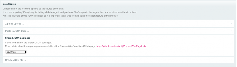 Migrator has a country list complete with ISO country code fields etc. If you want to go this route, install this commit of Migrator: https://github.com/adrianbj/ProcessMigrator/tree/3e2121b8fdb68e9d9dc0c6aca8aae75e923a2669 Alternatively, use https://processwire.com/talk/topic/4523-page-field-select-creator/ and paste in a list of countries, or even http://modules.processwire.com/modules/batch-child-editor/ A CSV list like this (https://developers.google.com/public-data/docs/canonical/countries_csv) would be helpful for the last two options.