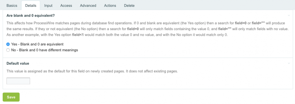 Hi @ethfun - welcome to PW! We do have default values now for certain fields. I don't recall all of them, but definitely for Integer, which should work if you are looking for a span value like in Joss' post. Of course if you need another fieldtype, you can always just do this in your template code: $value = $page->fieldname ?: 4