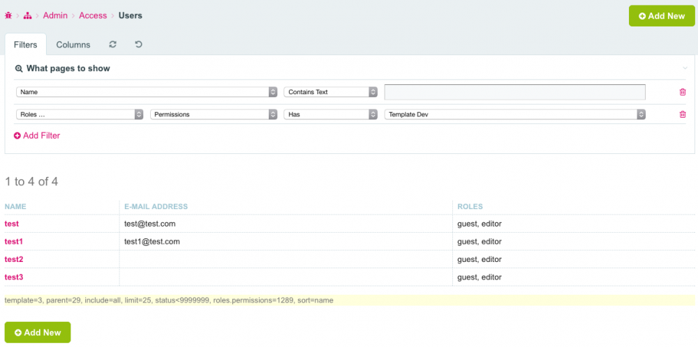 Another nice little (but hopefully useful) addition for you guys! This is not a panel, but it is in the same vane as the Template Path and Template Editor panels. This makes it really easy to show authorized users development versions of template files. To make this work, all you need to do is enable the checkbox. Then setup either a "template-dev" role or permission and assign that to the required users. Obviously this is not the best approach for major changes (you should set up a dev subdomain for that), but I think it could be quite handy for certain site changes. While you should keep track of any roles/permissions you have assigned, you can quickly disable this functionality by unchecking the enable option, or by deleting the template files (because if the dev version isn't available, it will fallback to the default one). Let me know what you think - I am happy to modify how this works if anyone has any suggestions. PS - yes I know you don't need a module to do this - a couple of lines in your ready.php file would also take care of it, but for some users I think this is simpler and easier to manage. PPS If you decide to go the route of using a permission (rather than a role), then you might find this type of selector on the Users page useful so you can see which users have the "template-****" permission.