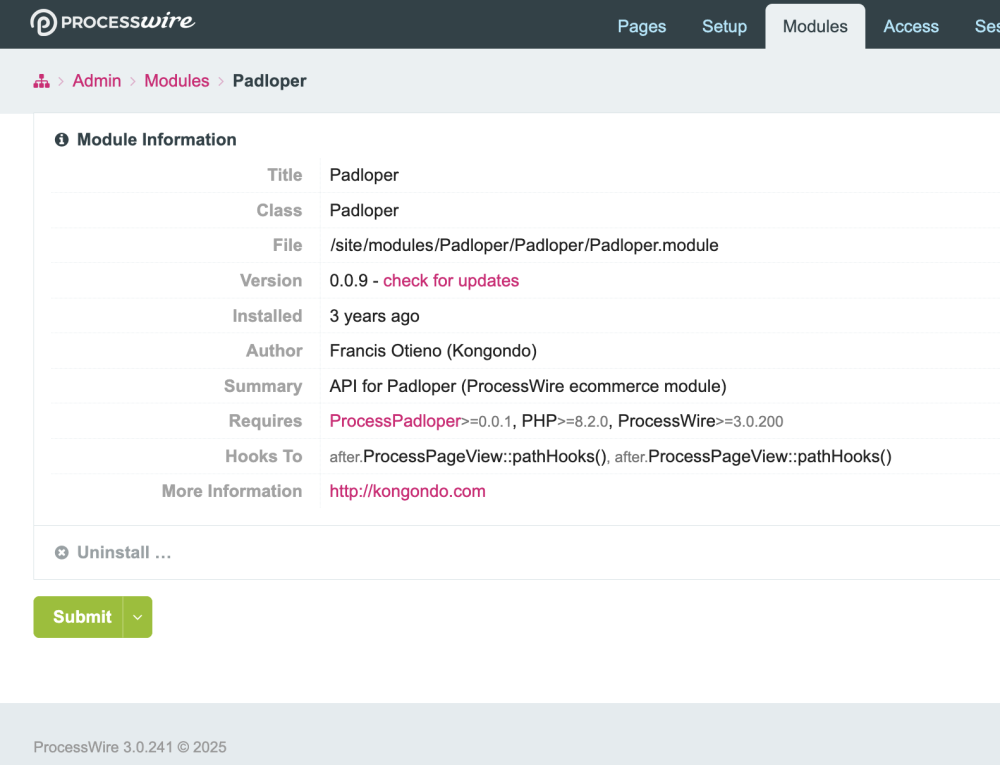 Hello, I have "inherited" the administration of this ProcessWire site, which includes an active Padloper store with several products. Looking at the modules page, I assume that this is probably a very old version (not sure if I should be looking somewhere else). How can I upgrade to a more up-to-date/stable version, without having to rebuild the whole shop and inventory from scratch? When I click "check for updates", I get an error that "That module is not currently tracked by the modules directory". Thank you for your help George