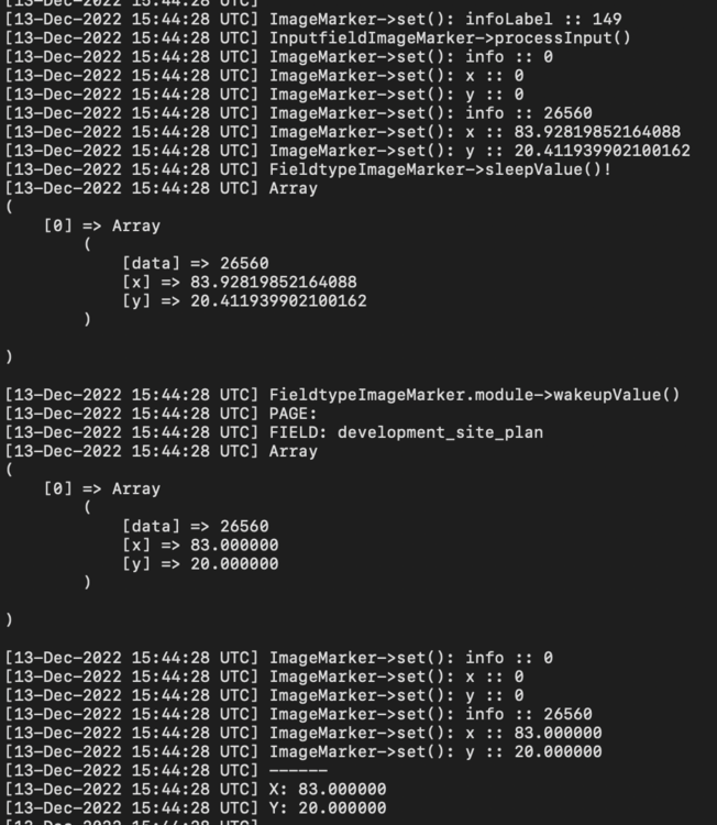Hi all, Not sure if this is the correct place for this question but as it pertains to the Image Marker module, I thought this might make sense. For some context, we had been using the module with a few custom changes for a couple years at this point. However for our needs we had to remove the int casting within the code, and updated the DB columns for the X & Y coordinates to be more precise. This was working fine up until recently when we noticed that the pins where moving slightly after having been positioned and then saved. The only thing we have changed in that time was upgrading the WP Core, and im curious if anyone is aware of any changes that would effect the rounding in this scenario? I could be wrong but from, sticking in a bunch of custom logging, I was able to follow the process to see at which point the rounding is occuring. If im understanding things correctly, it looks its occuring between sleepValue() and wakeupValue() based on this logging output. I have looked through the module files and can find no more instances of int casting or rounding, so im at the point now where im wondering if its actually the updated core thats contributting to this rounding, as sleepValue and wakeupValue are extendable if I understand things correctly, so presumably theres some element of the core coming into play with them? I should also mention, that I have tried changing the DB columns to use DECIMAL, FLOAT & DOUBLE datatypes but all result in the same odd rounding down to the nearest whole number. I'm convinced its not mysql doing the rounding, as I can manually enter the values no problem using Sequel Pro, but it always rounds down when saved via the CMS. Any thoughts or ideas would be much appreciated.