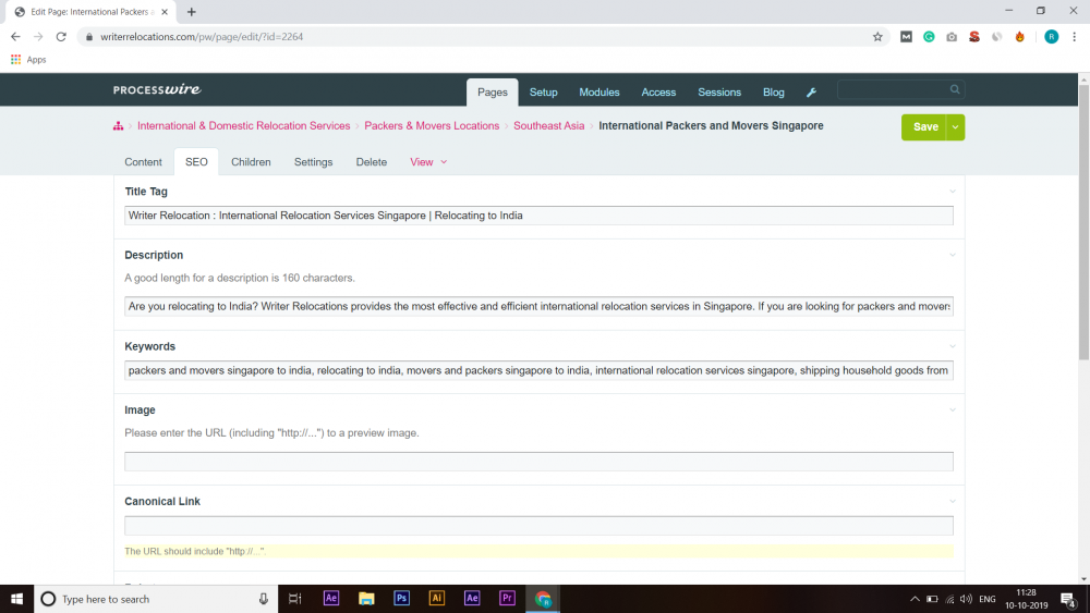 Hello Everyone, I was trying to update SEO meta title, description and meta keywords for my website in Process Wire CMS but it saving in the backend but it is not reflecting on my website, Please help me regarding this error. Please find below attached screen shot for your ref. TIA.