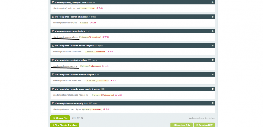 Hi all, We have this huge website (over 7000 pages and a few dozen templates). We've used TextLanguage and TextAreaLanguage fields for all textual fields, and all image and file fields have their own description input boxes for different languages too. Now we'd need to export all pages and send them to our translator so they can translate all site contents with their specialized programs, and a way to import the translations back to our site alongside the content in original language. Has anyone done anything similar to this? How did you solve it? Maybe there already is a solid way to do this, or an idea we've not thought of yet. Thanks for any thoughts!