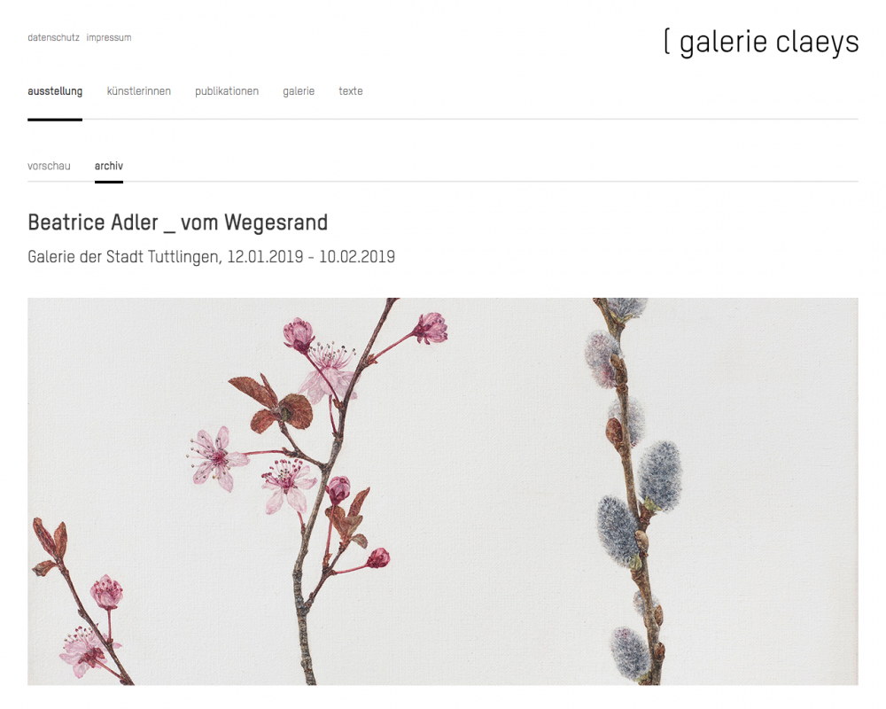 Gallery Claeys is a art gallery in Freiburg, Germany, with focus on exhibitions of female artists. Our agency designconcepts developed a website that features the latest exhibitions of the gallery as well as an archive of previous exhibitions. Every artist has its own page with an excerpt of their works and a vita of the artist. The website was build with help of the framework UIkit and Barba.js for smooth transitions between pages. www.galerie-claeys.de Features: Exhibitions Page transitions Exhibitions On the homepage you can find a preview of upcoming or current exhibitions as well as an archive of previous exhibitions. Based on the date the exhibitions get automatically sorted in one of the three categories (preview, current or archive). Each category has its own deep-link with URL segment. Page transitions The smooth fading page transitions are made with Barba.js. Modules used: Front-End Page Editor Markup Sitemap XML ProCache Tracy Debugger Upgrades Regards, Andreas