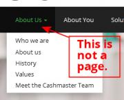 I'd be grateful if anyone has a solution to the following issue. By default Processwire builds its urls like this: www.domain.com/pagenameparent/pagenamechild On the surface this seems excellent for SEO but has been causing us a few issues. Let me explain. In a responsive environment a drop-down menu like below must activate on touch/click. And, the top level is NOT a page. (Obvious, when you consider that you cannot 'click' to this link with your finger). See this example. Below you will see that ABOUT US is a top level menu with children. Is this arrangement on a Bootstrap menu ABOUT US cannot be clicked as it could be on a tablet. Therefore, ABOUT US is not a page. Let's take the first child as an example. WHO WE ARE, would have its url structure built by Processwire like this: www.domain.com/about-us/who-we-are/ 2 problems here: If we create breadcrumb navigation then ABOUT US becomes a link to a page that should not exist. /about-us/ on its own creates issues with SEO. In a complex system trying to exclude these from searches and sitemaps is a a real issue. What would solve the problem is the ability to rewrite the url structure. It would be preferable to write the example url as www.domain.com/who-we-are/ Can this be done without having to change any core code?