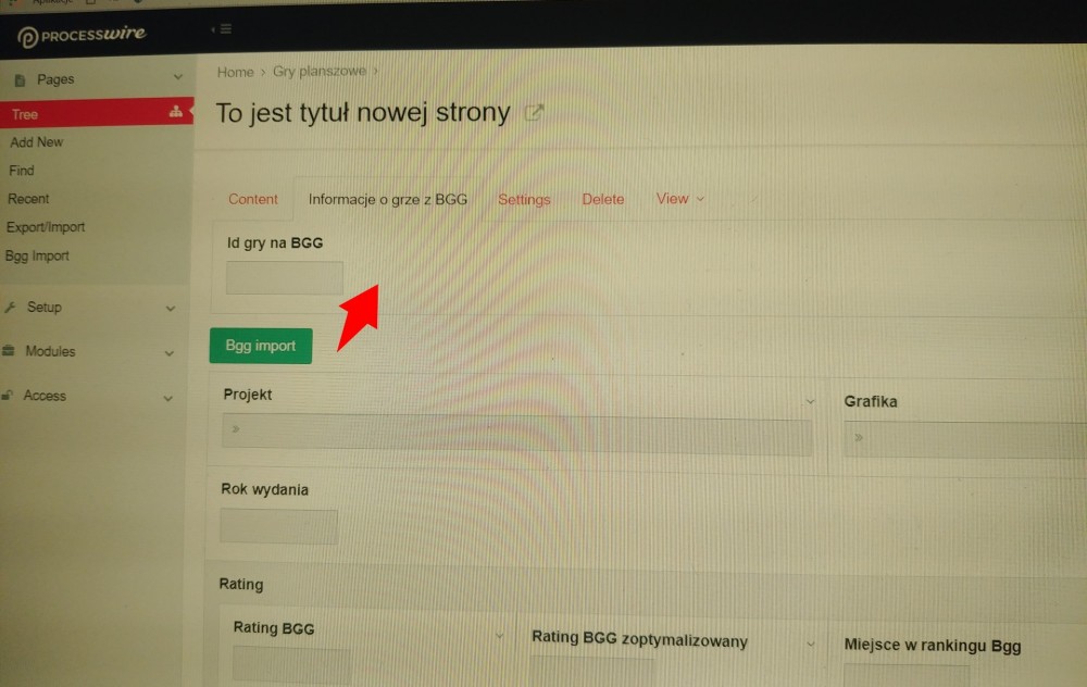 I'm coding my first module now. I've just managed to add a button to the page edit form but am not content with its placing. Is there any way to place it just next to the input field? I've marked the desired place with the arrow on the attached screenshot. My current code: $this->addHookAfter('ProcessPageEdit::buildFormContent' , $this, 'addButton'); public function addButton($event){ $form = $event->return; $f =$this->modules->InputfieldSubmit; ... $form->insertAfter($f, $form->get("bgg_id")); } "bgg_id" is the name of the targeted field.