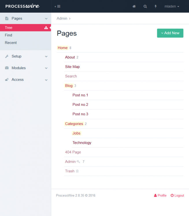 First, I want to thank everyone who has been developing this great CMS. I really love it and I can do so much more and even learn more about coding. Now I try to create something new and very important for me, but I have a small problem with it. I am trying to make a website where users only see their own stuff or blank / redirect if not logged in. The problem is that I want to use the same template for all users, so I can't put a certain page as parent for selectable pages because the parent should always be /clients/username/categories/ (different path for every user). Input field type is Select or PageAutocomplete. User can create new categories through it. I would also like to know if there is a way to prevent users to see only what they have under their own /clients/username without making new templates for all users. I only show what I want them to see through templates but if they know the admin url then they would see all the pages and they would have access to edit all the pages which are created with certain content type. They need only access to create new content under their own "main page". This user page is created when a new user is registered and linked with field (content of the field is user id). Select is very important because every category gives special view for user. user1 -- Project 1 ---- Year -------- Things that user creates from Page 1. -- Categories ---- Things I want to use as Select List for new pages -- Project 2