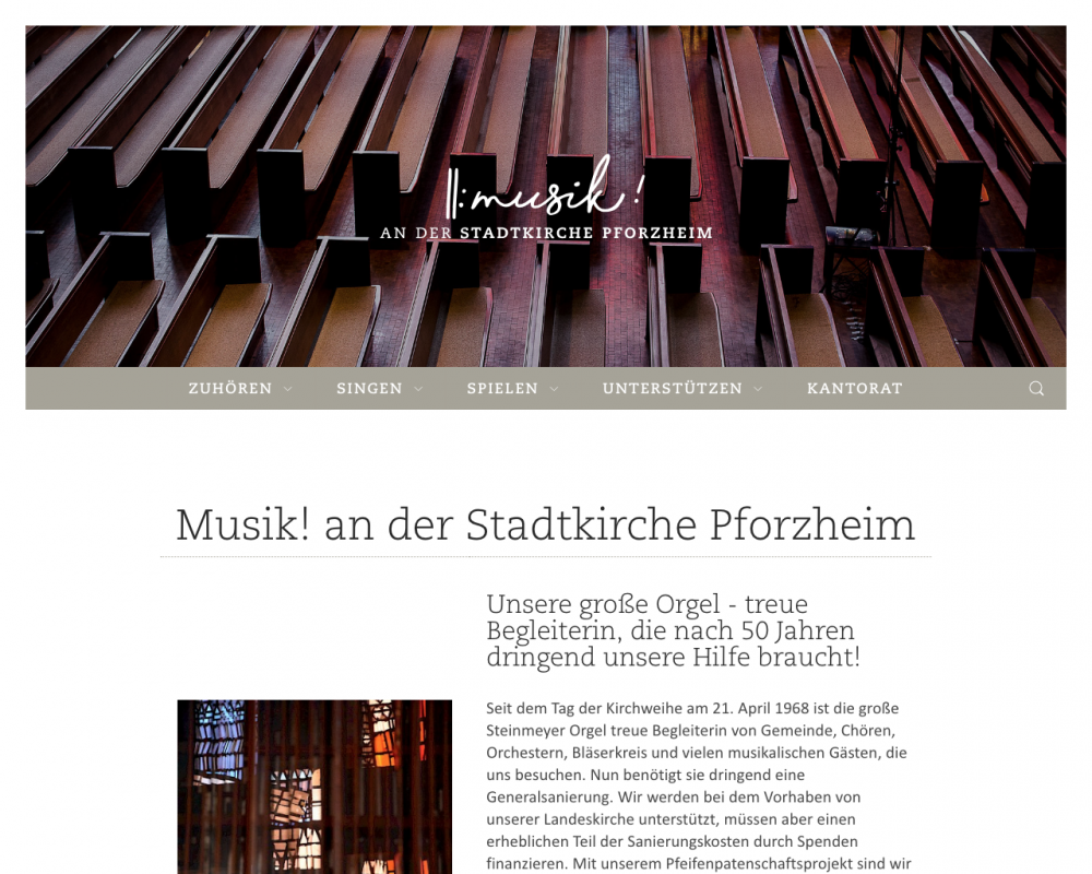 This is a website for the musical area of the protestant town church Pforzheim, Germany. Our agency designconcepts developed a website that provides informations about the choirs, ensembles and orchestras as well as dates for their rehearsals, services and concerts. The website was build with help of the framework UIkit. www.musik.stadtkirche-pforzheim.de Features: Events Download dates Events The events for rehearsals, services and concerts were created in Microsoft Excel and then imported as pages from CSV. For better organization, events are cross-referenced with choirs, ensembles and orchestras. Services and concerts are displayed in a events list, but rehearsals are only displayed on the page of the choir, ensemble or orchestra, to make the events list more compact. Download dates It is possible to download every event date as ICS file, which will be generated on clicking the download button. You can then add this event easily to your calendar app and stay up-to-date. Modules used: Email Obfuscation (EMO) Front-End Page Editor Import Pages from CSV Markup Sitemap XML ProCache Tracy Debugger Upgrades Wire Mail SMTP Regards, Andreas
