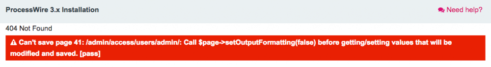 I started a fresh install of PW 3.0.36 (from composer). Went through the installation UI and got an error right after I submitted the admin ID and PWD See screenshot attached. This is the first time I've ever encountered this error message during installation. Anyone seen this before? Thx