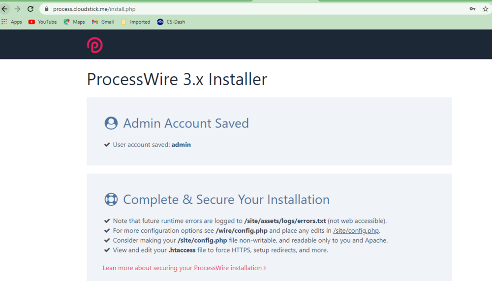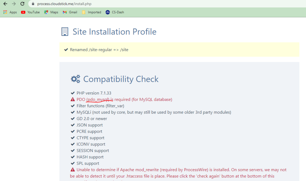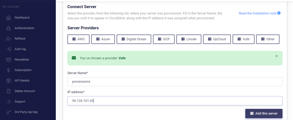 Here are the step by step to install and setup ProcessWire with the help of a server management tool - https://cloudstick.io/ 1. Create your Vultr compute. 2. Select the Operating system Ubuntu 16.04/18.04/20.04 LTS >> Enter your server root password then click on Deploy now! 3. Create an account in CloudStick and connect your server: Click on connect server >> Enter your server login details >> Add this server. 4. Your server setup will be done in couple of minutes - The setup will finish less than 8 minutes. Then select your server: 5. Create an account to host/upload ProcessWire: Click on Accounts >> Create an account >> Create Custom Web application: 6. Enter the web application details, such as the email address which you would like to receive the SFTP login details >> web application name >> Domain name >> username then >> select the web application stack >> nginx + apache >> then create web application. 7. Now select the web application then install SSL: 8. Open your email account, and find the login details to connect the server over SFTP >> then upload the source code of ProcessWire: 9. Let us open the domain in browser once the upload finish. 10. Select the profile and click next: 11. Click next to proceed further: Now, you will see an incompatibility issue with PDO-Mysql which can be install in 2 clicks. 12. Go back to the summary page >> Click on easy PHP >> Select the PHP version of your web account: 13. Then it is time to enable PDO_Mysql, scroll down and enable it: 14. Go back to to the ProcessWire installation URL and click on check again >> You can see no incompatibility issue after enabling PDO_Mysql: 15. Click on Next and now it is time to enter the database credentials: 16. let us create the database, db user and grant privilege's to the db user - it is just matter of few clicks and very easy! Click on the menu Accounts >> Select your web account of ProcessWire >> Click on App Database then create the a database: 17: Click on create database and enter the database name: 18. Create the database user: 19: Go back to the database page and click on Grant user then grant permission: 20. Go back to the ProcessWire installation URL and enter the database credentials you have created in CloudStick dashboard. Now, it is time to setup your admin user credentials and setup admin area URL: 21. Then you are done: