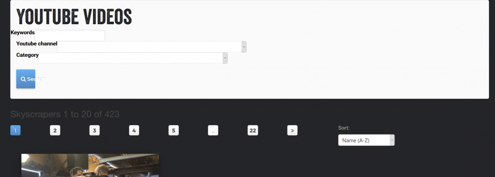 Hi, i need some help with the filtering based on the Skyscrapers demo/func. I´m not that great with php so be patient. My structure looks like this Youtube videos > Youtube channel > Video on the video template (youtube_channel_video) i have multiple drop down fields and other fields that i would like to filter on the front end. I also have other pages that need this functions with search/filter etc but with different filters. This is the code i have in my search-form.php. Right now i experimenting with the field/option (category) that every video have in their template. The first filter (youtube_channel) works but im trying to get the category filter to work. <div id='skyscraper-search' class='uk-panel uk-panel-box xuk-panel-box-primary uk-margin-bottom'> <h3 class='h3'>Youtube videos</h3> <form class='uk-form uk-form-stacked' method='get' action='<?php echo $config->urls->root?>search/'> <div class='row'> <label class='uk-form-label' for='search_keywords'>Keywords</label> <div class='uk-form-controls'> <input type='text' class='uk-form-width-large' name='keywords' id='search_keywords' value='<?php if($input->whitelist('keywords')) echo $sanitizer->entities($input->whitelist('keywords')); ?>' /> </div> </div> <div class='col-6'> <div class='row'> <label class='uk-form-label' for='youtube_channel'>Youtube channel</label> <div class='uk-form-controls'> <select id='youtube_channel' name='youtube_channel' class='uk-form-width-large'> <option value=''></option> <?php // generate the youtube_channel options, checking the whitelist to see if any are already selected foreach($pages->find("template=youtube_channel_page") as $youtube_channel) { $selected = $youtube_channel->name == $input->whitelist->youtube_channel ? " selected='selected' " : ''; echo "<option$selected value='{$youtube_channel->name}'>{$youtube_channel->title}</option>"; } ?> </select> </div> </div> </div> <div class='col-6'> <div class='row'> <label class='uk-form-label' for='category'>Category</label> <div class='uk-form-controls'> <select id='category' name='category' class='uk-form-width-large'> <option value=''></option> <?php // generate the category options, checking the whitelist to see if any are already selected foreach($pages->find("template=youtube_channel_video") as $category) { $selected = $category->youtube_video_category == $input->whitelist->youtube_video_category ? " selected='selected' " : ''; echo "<option$selected value='{$category->youtube_video_category}'>{$category->youtube_video_category->title}</option>"; } ?> </select> </div> </div> </div> <div class='uk-margin-top'> <button type='submit' id='search_submit' class='uk-button uk-button-primary' name='submit' value='1'> <i class='uk-icon-search'></i> Search </button> </div> </form> </div> This is my search.php <?php namespace ProcessWire; $selector = ''; $summary = array( "title" => "", "youtube_channel" => "", "category" => "", "country" => "", ); if($input->get('youtube_channel')) { $youtube_channelName = $sanitizer->pageName($input->get('youtube_channel')); $youtube_channel = pages("/youtube-videos/$youtube_channelName/"); if($youtube_channel->id) { $selector .= "parent=$youtube_channel, "; $summary['youtube_channel'] = $youtube_channel->title; $input->whitelist('youtube_channel', $youtube_channel->name); } } foreach(array('category') as $key) { if(!$value = $input->get($key)) continue; else { $value = (int) $value; $selector .= "$key=$value, "; $summary[$key] = $value; $input->whitelist($key, $value); } } if($input->get('keywords')) { $value = $sanitizer->selectorValue($input->get('keywords')); $selector .= "title|body|category%=$value, sort=title"; $summary["keywords"] = $sanitizer->entities($value); $input->whitelist('keywords', $value); } $videos = findSkyscrapers($selector); $browserTitle = 'Youtube video search - '; foreach($summary as $key => $value) { if($value) { $key = ucfirst($key); $browserTitle .= ucfirst($key) . ": $value, "; } else { unset($summary[$key]); } } region('browserTitle', rtrim($browserTitle, ', ')); region('content', files()->render('./includes/search-summary.php', array('items' => $summary)) . renderSkyscraperList($videos) ); This is my skyscraper-list-item.php file <?php echo " <div class='col-12 col-sm-12 col-md-6 col-lg-6 col-xl-4 col-xxl-4 col-xxxl-4 bmar10'> <div class='youtube_search_holder'> <a data-fancybox data-autoclose='true' data-width='1500' data-height='844' data-height='360' href='{$skyscraper->youtube}autoplay=1'> <div class='youtube_thumbnail_placeholder'><img src='{$skyscraper->youtube_thumbnail->url}' class='youtube_thumbnail_image w-100'> <div class='playicon'></div></div></a> <div class='youtube_search_thumbnail_content'> <div class='h6 text-uppercase green tmar3 title'><a href='{$skyscraper->parent->channel_url}' target='_blank' title='{$skyscraper->parent->title}'>{$skyscraper->parent->title}</a></div><div class='text-uppercase white h3 limit'><a href='{$skyscraper->youtube}' data-fancybox data-width='1500' data-height='844' data-height='360'>{$skyscraper->title}</a></div> <div class='h5 text-uppercase gray date'>{$skyscraper->youtube_video_publishdate}</div> <span class='white h7'> {$skyscraper->youtube_video_category->title} {$skyscraper->countries->title} {$skyscraper->competition->title} {$skyscraper->competition->parent->parent->title} {$skyscraper->armwrestler_competition_gender->title} {$skyscraper->armwrestler_arm->title} {$skyscraper->armwrestler_age_category->title} {$skyscraper->competition_weight_class->title} {$skyscraper->competition_video_match->title} {$skyscraper->videotags} </span> </div></div></div> "; ?> This is the front end right now (no styling ? In the category filter, right now there is multiple categories with the same name, i would also like to restrict it to just one result per category. Please help!