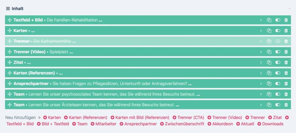 The Katharinenhöhe is a rehabilitation clinic in the Black Forest (Germany) for teenagers, young adults and families with children who suffer from cancer. Our agency designconcepts was lucky to relaunch their website. Our goal was to unify the previous separated areas (families and teenagers/young adults) and provide a clear structure for potential patients. Also we wanted to show that the clinic is a nice place to live, despite the circumstances. We rebuild the website from scratch with the framework UIkit and used large images as well as videos. www.katharinenhoehe.de Features: Repeater Matrix Tour Contrast Theme Glossary Autocomplete Search Facebook Repeater Matrix Most of the pages use a basic page template which have one Repeater Matrix field. This field has around 15 different content elements, so it is easy to build a page with different elements in various amounts. Tour On the site tour we build a image map with markers showing interesting places of the clinic. For this task the nice module Image Marker and the Marker component of UIkit came in handy. The tour is available on every page containing a marker. Contrast Theme For a better reading experience you can switch to a more contrasting theme of the website by clicking the theme switcher (on the top right). This is a separate stylesheet with darker color variables. The choice will be saved in a session variable and stays as long as the browser is opened. Glossary To explain complicated medical terms better, we highlight a set of terms in every textarea they occur and explain them with a tooltip. For this task we wrote a simple Textformatter module which looks for the terms in a page and replaces the terms with the tooltip. This tutorial by @benbyf helped me. Thank you! ? Modules used: Color Email Obfuscation (EMO) Front-End Page Editor Functional Fields Image Marker Markup Sitemap XML Phone ProCache Repeater Matrix Tracy Debugger Upgrades Regards, Andreas