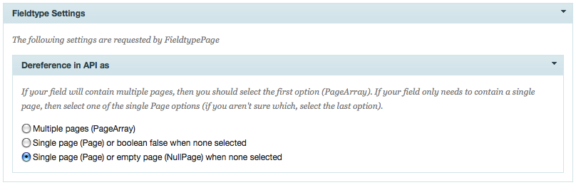 ryan Posted June 1, 2011 Posted June 1, 2011 Just in case anyone is interested, I posted an update to the 2.1 source that can be handy when working in the API with Page fieldtypes. With Page references that hold a single page, you used to have to check if the field had a value before you accessed it (at least, if you wanted to avoid a PHP warning). For instance, this code would produce a warning if your $page->category didn't contain a value: echo "<h2>Category: {$page->category->title}</h2>"; If you hadn't selected a value for $page->category, then the above snippet would result in a PHP warning (at least in debug mode). So to code it properly you would have wanted to do this: if($page->category) echo "<h2>Category: {$page->category->title}</h2>"; In the latest update, you can now configure the Page fieldtype to define what it's non-selected value is. You have a choice of either boolean false (the existing behavior), or a blank Page (NullPage). The advantage of having your undefined Page reference resolve to a blank page is that you no longer have to check if the field has a value before you access it. So you can now do this... echo "<h2>Category: {$page->category->title}</h2>"; ...and it won't produce a warning when the $page->category value is not set. Of course, you'd still get blank output of "<h2>Category: </h2>", but I'm just using this as an example. If you use a lot of single-page references, you'll find this can simplify your code in some instances. So as to be backwards compatible, this behavior is optional, and you can choose the behavior when you define your field (see screenshot below). When using a Page fieldtype to hold multiple pages, there is no difference, as those always resolved to a PageArray regardless of how many pages it contained.