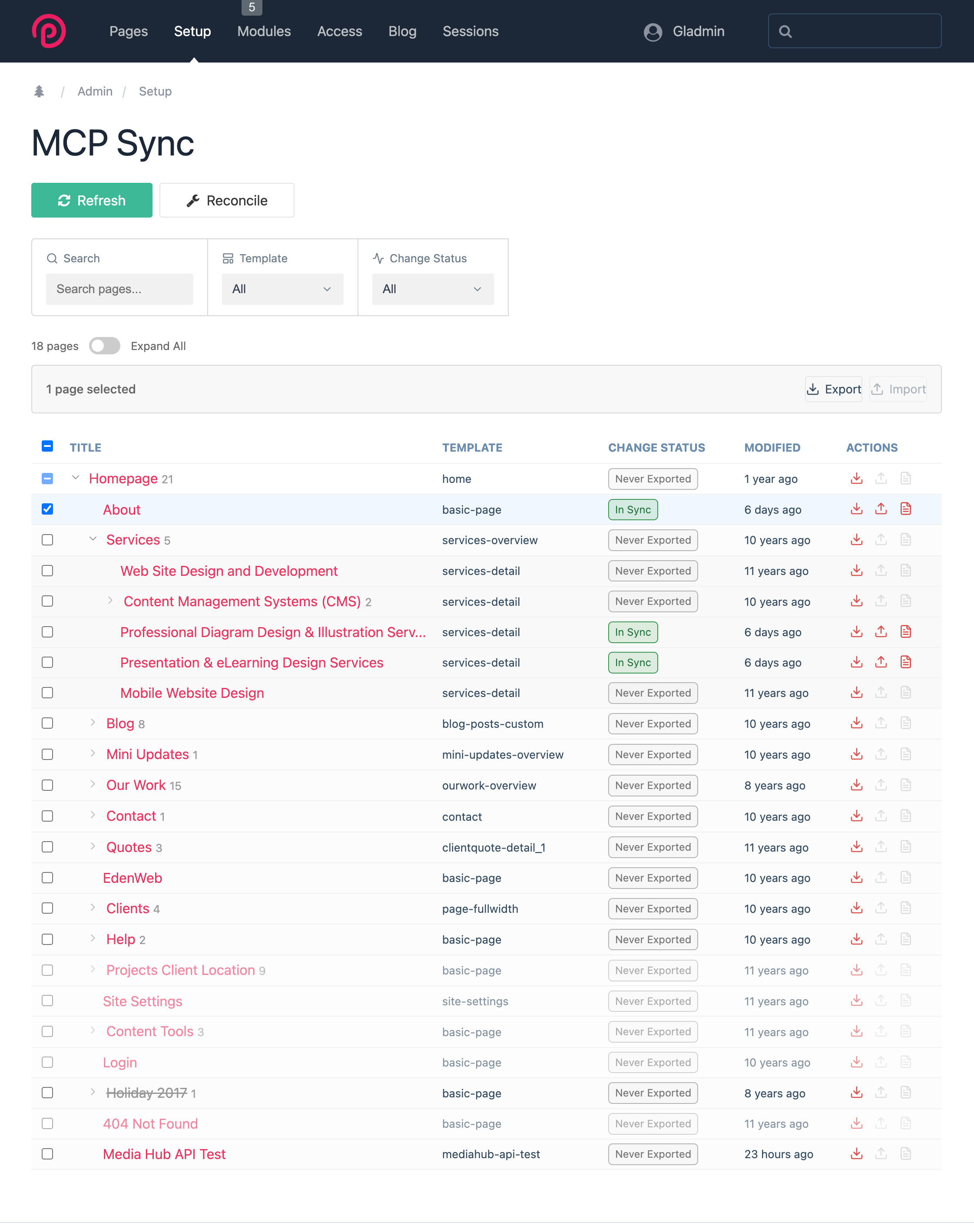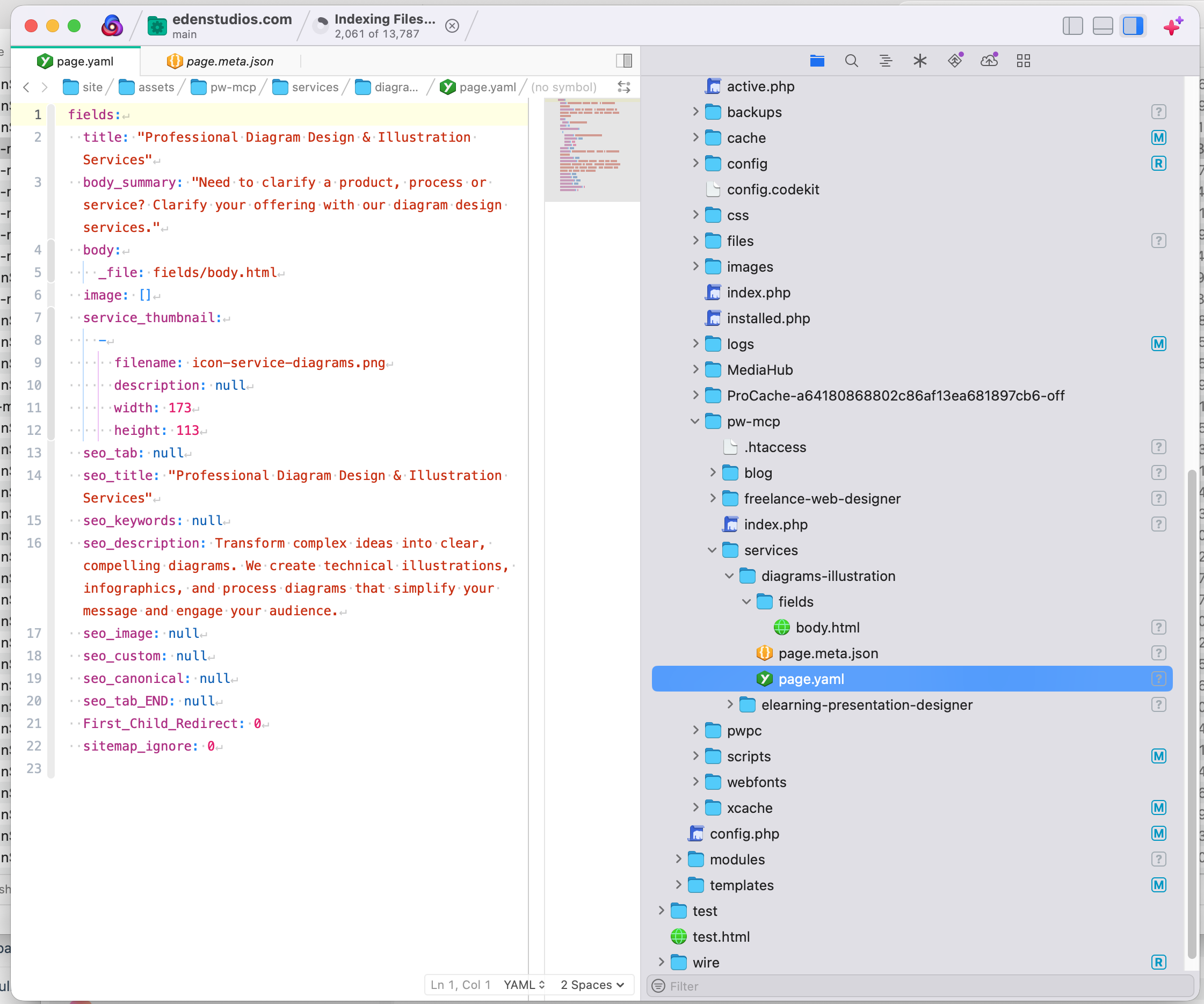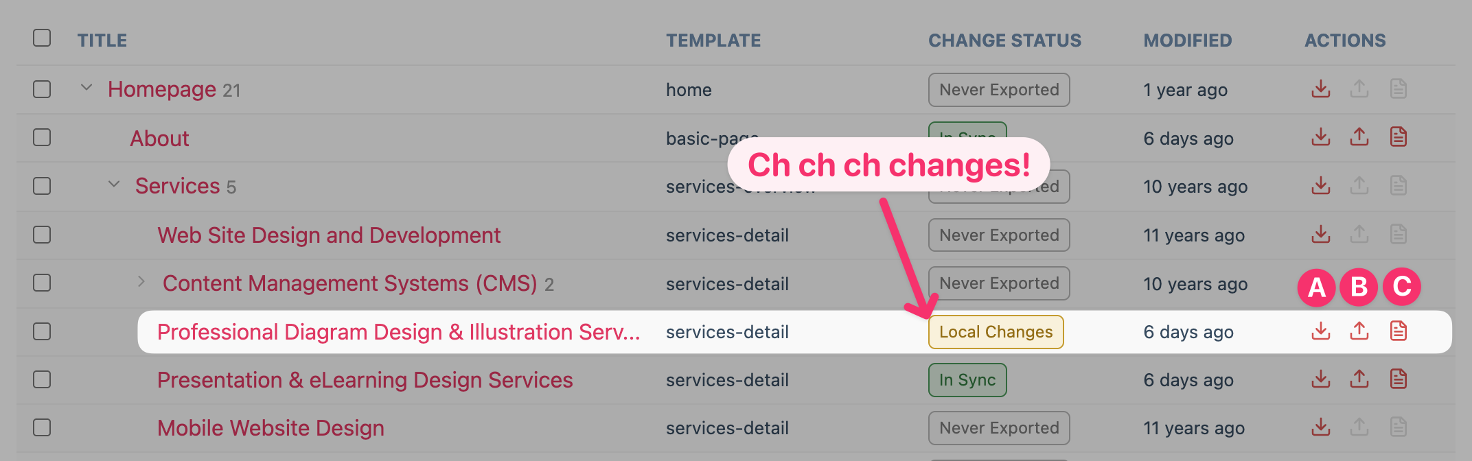 Peter Knight Posted 6 hours ago Author Posted 6 hours ago Some updates to the Cursor MCP to Processwire Module. There's a new front-end called MCP Sync. So if the MCP server acted as a bridge between Processwire and Cursor, why do I then need a front-end UI? Surely the point of an MCP server was 50% to bypass the Admin? Well, apart from building it for fun, I thought it was nice to have a more visual front-end for the import and export of pages. From the screenshot you might notice a traditional tree view with some useful columns... Change Status Never exported - probably doesnt need a badge but just means it's the original state Local Changes - I've downloaded the page to a file and edited it In Sync - changes have been imported Conflict - both the remote (PW) and the local file) have changes In the Actions column the three icons are WTF (Wire to file) 🙂 - exporting FTW (File to wire) - importing This was a little tricky because import and export mean different things wether you're operating from Curors MCP or import/export via the Cursor UI. So I settled on WTF and FTW because they are less relative to your environment. Big change Previously, when a page was in WTF mod,e I was storing a YAML file. Apart from Matrix items which were separate YAML files. But as we know, YAML can be prone to misformatting so the Module now understands if a field is a Rich Text field and will export that as a stand alone HTML file with a match name. It's means a few more files on the file system than the previous method but I like that I get a separate HTML entity. The screenshot of my local file system you can see I have WTF my Diagram and Illustrations page. And not just because the content was out of date and mentioned Macromedia Flash! Back to the GUI, you can see a screenshot of that row now picks up the change requiring a FTW. There's a few other helpful functions such as a changes preview as a safety step prior to committing a FTW. There's also a View YAML icon on each row which is a preview too. Here's the raw details of my WTF of Diagram and Illustrations page site/assets/pw-mcp/services/diagrams-illustration/page.meta.json This is a high-level overview of the exported page and is not meant to be edited. { "_readme": "DO NOT EDIT - This file is auto-generated. Edit page.yaml and field HTML files instead.", "pageId": 1051, "canonicalPath": "/services/diagrams-illustration/", "template": "services-detail", "title": "Professional Diagram Design & Illustration Services", "pulledAt": "2026-02-11T11:27:58+00:00", "lastPushedAt": null, "revisionHash": "sha256:2c264809d740ff009e27a5c664b3dced0e529493e54f39c3b458a718d47defb4", "contentHash": "0fc046d624ae2a6add4f6ffbcd6b80dd", "status": "clean" } /site/assets/pw-mcp/services/diagrams-illustration/page.yaml Note how the body field around line 4 or 5 is an RTE, so it's not included in the raw YAML but saved as a standalone file. fields: title: "Professional Diagram Design & Illustration Services" body_summary: "Need to clarify a product, process or service? Clarify your offering with our diagram design services." body: _file: fields/body.html image: [] service_thumbnail: - filename: icon-service-diagrams.png description: null width: 173 height: 113 seo_tab: null seo_title: "Professional Diagram Design & Illustration Services" seo_keywords: null seo_description: Transform complex ideas into clear, compelling diagrams. We create technical illustrations, infographics, and process diagrams that simplify your message and engage your audience. seo_image: null seo_custom: null seo_canonical: null seo_tab_END: null First_Child_Redirect: 0 sitemap_ignore: 0 site/assets/pw-mcp/services/diagrams-illustration/fields/body.html Just a html page and not worth including That's it for the mo. 1