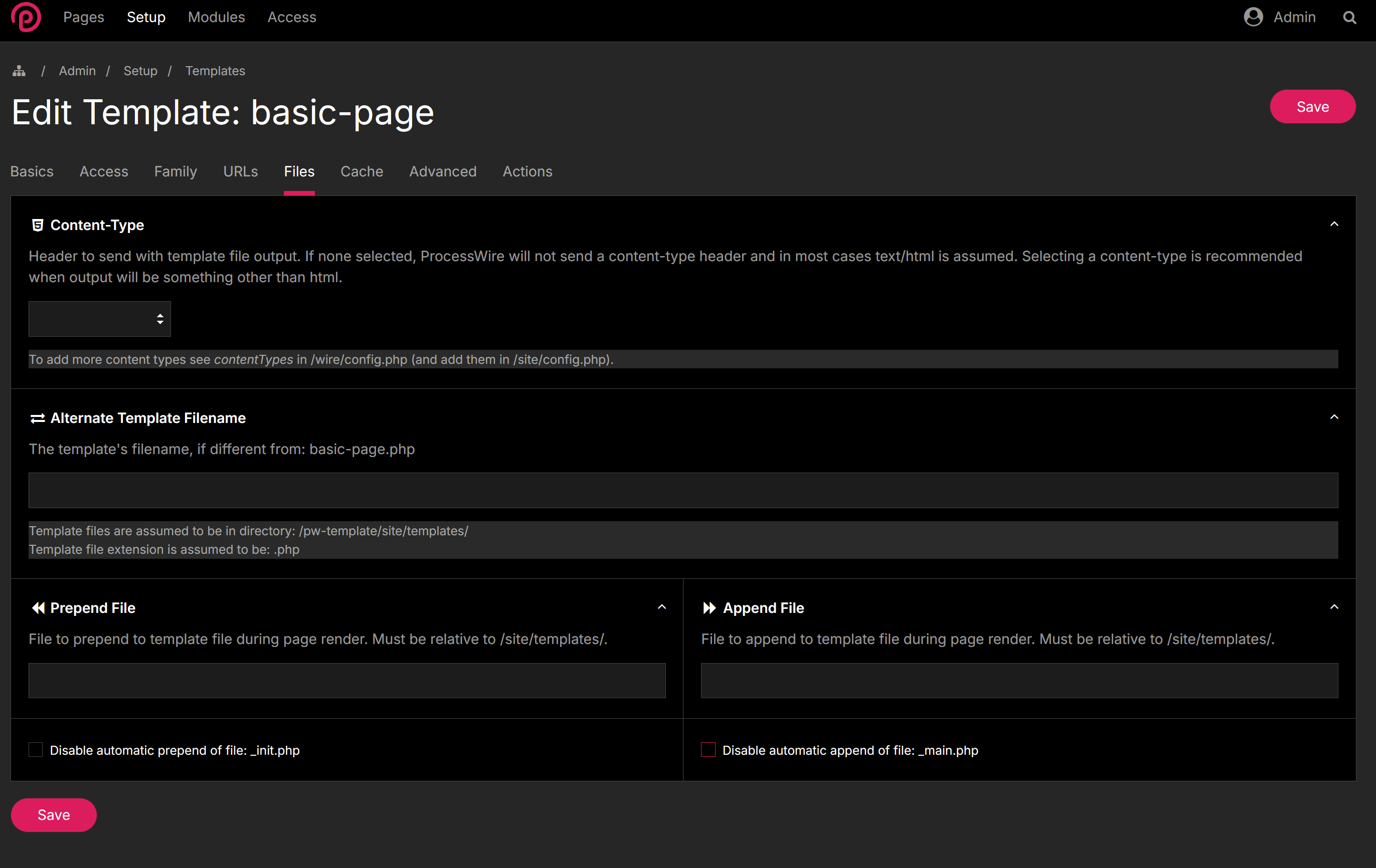 How to use Markup Regions with a different starting base to _main.php for some web-pages?