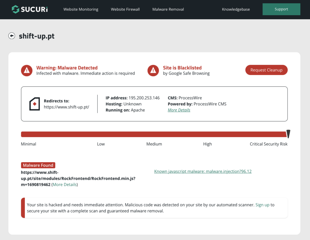 @bernhard you might want to have a look at this. One of my sites is displaying the red screen of extermination, saying that the site is dangerous and contains malware. Google itself wasn't much help with search console just giving me a vague answer, but using other tools it comes down to Rockfrontend's JS: Has anyone had this issue? Any ideas? Edit: I was on version Rockfrontend version 3.2.2. After updating to the current version, Sucuri's SiteCheck doesn't seem to complain about RF anymore and only says the site is blacklisted by GSF. I've requested a new review from Google and I'm awaiting a response.